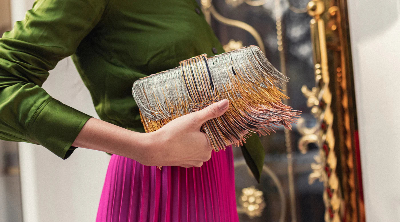 Beige jaali clutch