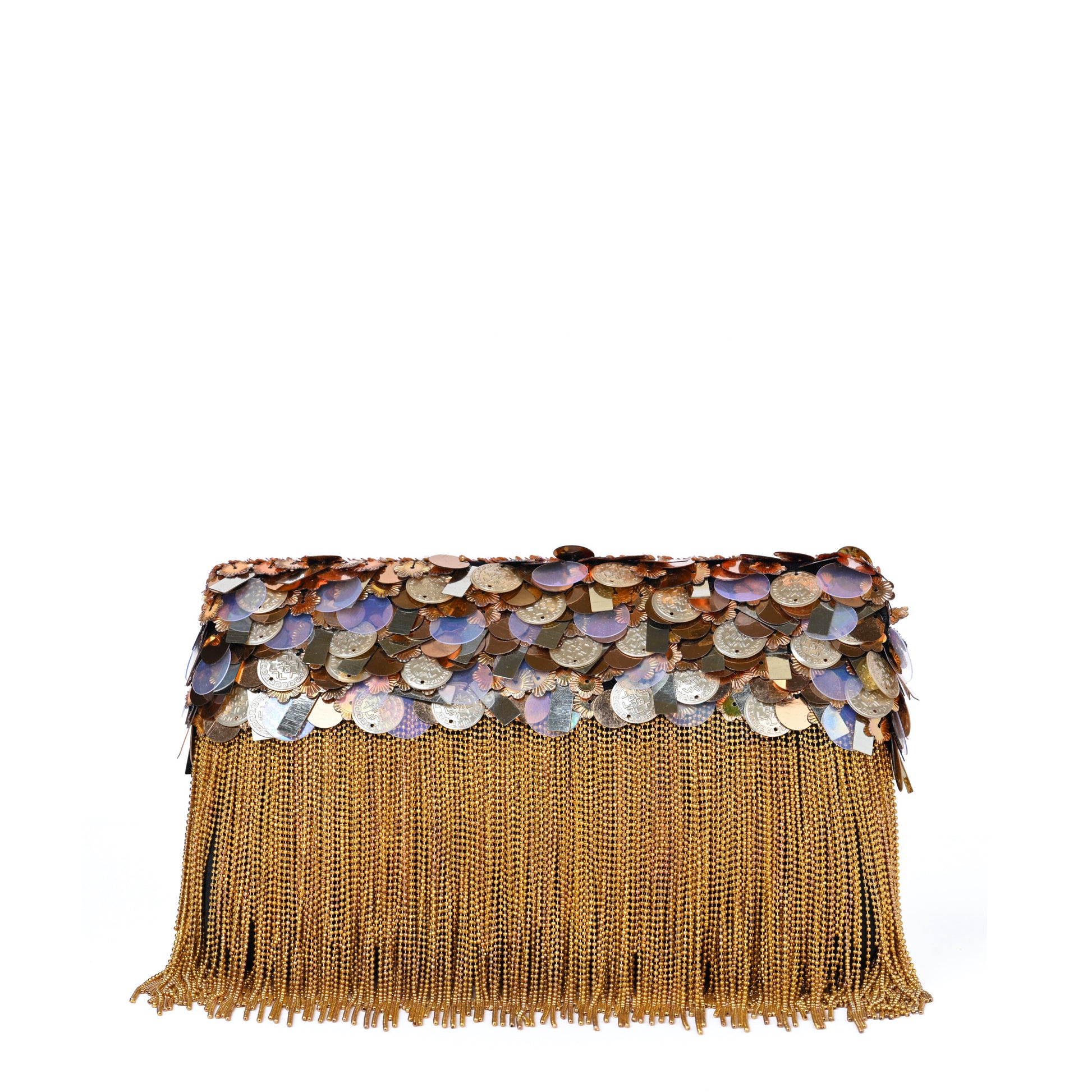 Beautifully handcrafted clutch bag with sequin and Brass chains in Gold